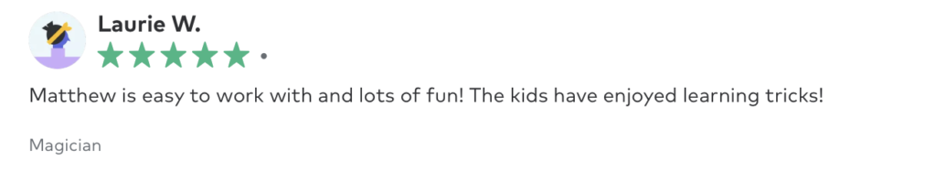 If you want something for smaller groups where the magic happens right in front of them and in their hands this is the show you want.