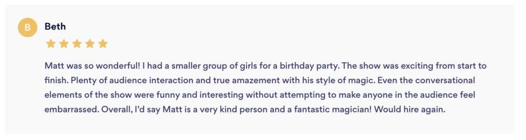 So make sure you consider invited Matt or J.D. to your next birthday, family reunion, or really any event you want to make fun and memorable.